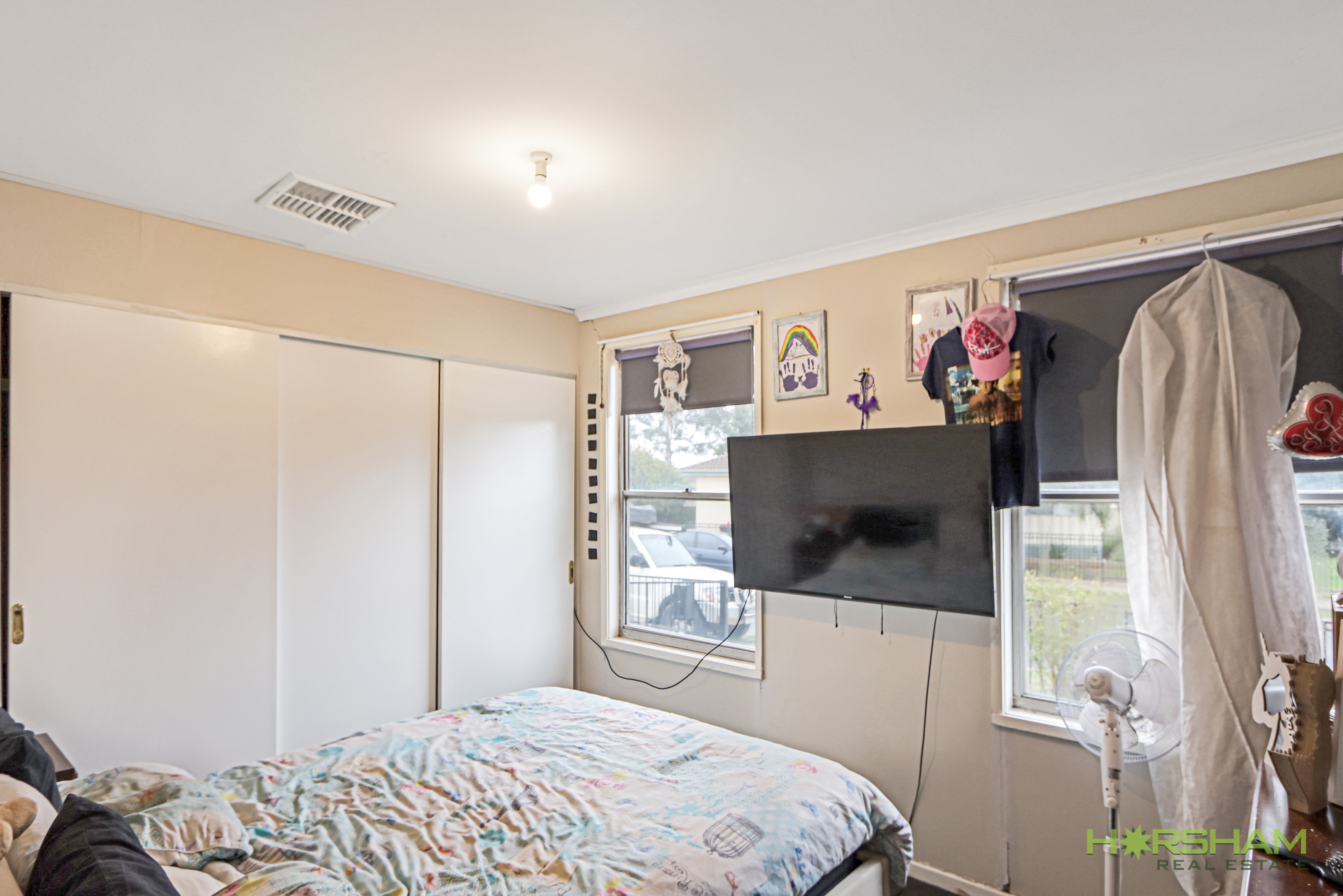 The home has ducted evaporative cooling and ceilings fans, plus a cosy